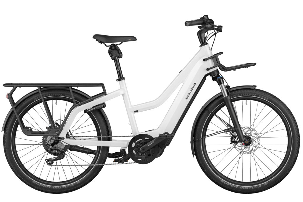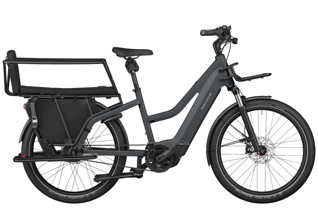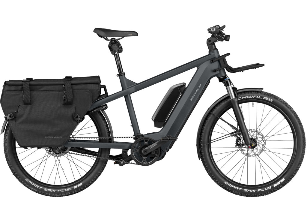 Auf dem hinteren Gepäckträger lassen sich Lasten bis zu 65 kg transportieren und je nach Wunsch und Konfiguration auch bis zu 2 Kinder bis zum Grundschulalter sicher mitnehmen. Der zusätzliche Frontgepäckträger macht das Lastenrad bietet zusätzliche Ladefläche. Hier könnt ihr klassisch einen Korb installieren oder auch die von Riese & Müller angebotenen Taschen befestigen – in jedem Falle geht eine Menge mit.